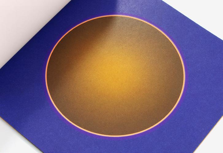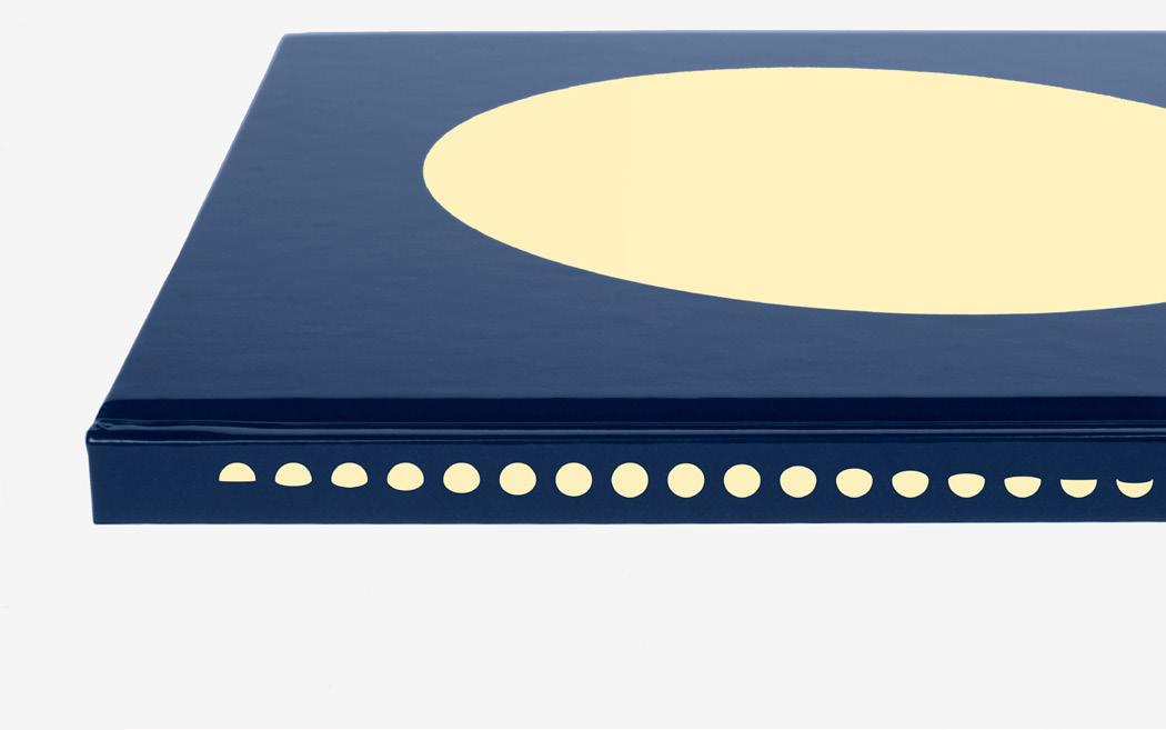 Dans la lune reproduit un cycle lunaire aux formes simples et épurées. En combinant 8 encres de couleur, Fanette Mellier propose une avancée sensible dans la lunaison : croissante, la lune diffuse une subtile palette de blancs colorés; décroissante, sa face cachée se révèle par un jeu de surimpressions. Cette transcription oscille entre contrainte technique et expérimentation, science et pure poésie. Les 30 lunes sont celles du mois de novembre, date de parution de l’ouvrage.