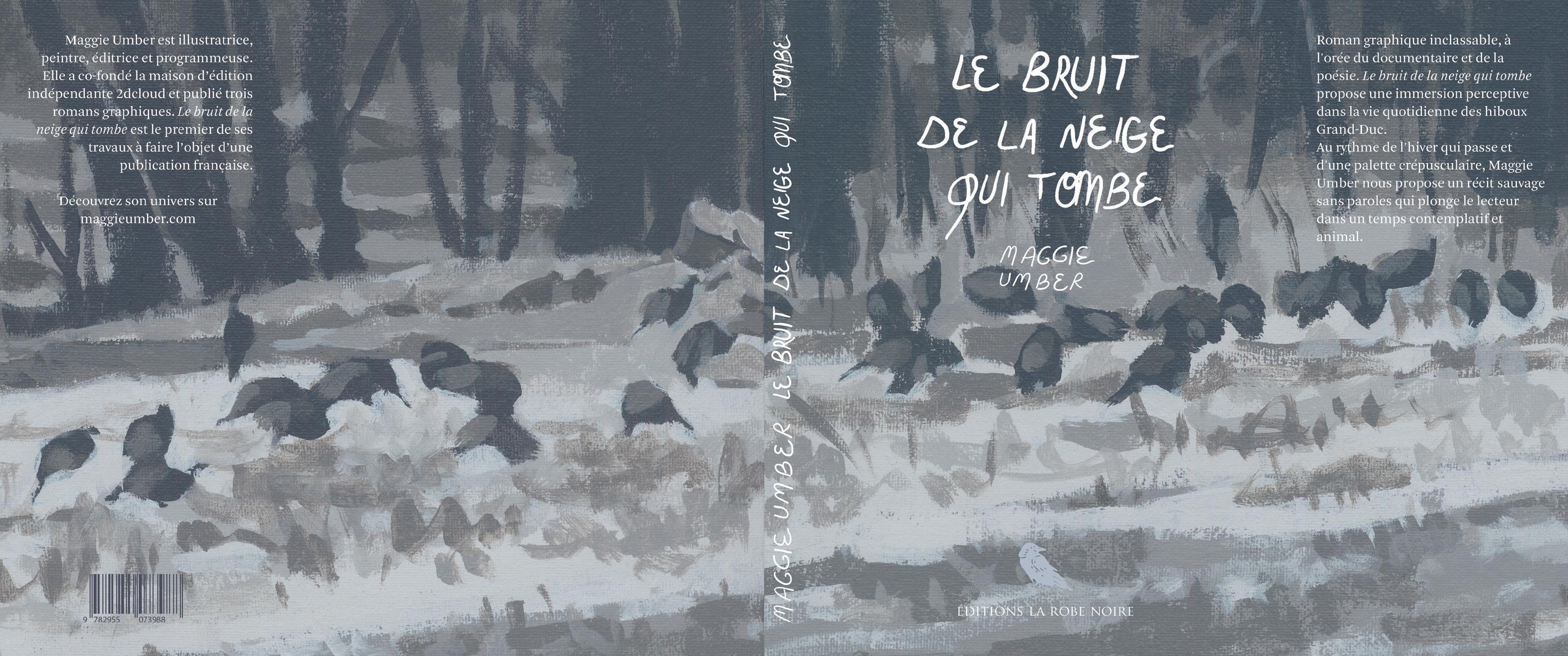 Le bruit de la neige qui tombe est un roman graphique inclassable, à l’orée du documentaire et de la poésie. Il propose une immersion perceptive dans la vie quotidienne des hiboux Grand-Duc. Au rythme de l’hiver qui passe et d’une palette crépusculaire, Maggie Umber nous propose un récit sauvage sans paroles qui plonge le lecteur dans un temps contemplatif et animal.