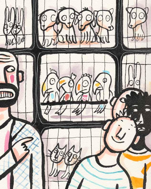 Oui, Frérot, ouf ! Il y a beaucoup de gens qui font du mal aux animaux, juste pour s’amuser, et ça me met toujours en rogne, tu le sais, toi qui adores comme moi contempler les petites bêtes dans leur cage ou leur aquarium dans l’animalerie du bout du boulevard. À chaque fois on sort de là mal à l’aise, hein ! Comme elles ont l’air malheureuses, toutes ! On se dit qu’on y retournera plus et puis, on rêve de prendre de leurs nouvelles, alors on pousse de nouveau la porte. Et les chatons, les chiots, les perroquets, les tritons nous lancent des regards désespérés, adopte-moi qu’ils disent, et quand on commence à compter combien on a dans nos poches, un vendeur surgit et aboie que ça suffit maintenant d’embêter les animaux, que c’est pas un zoo ici mais un magasin où l’on vend des compagnons à deux ou quatre pattes, à poils, à plumes ou à écailles... (Non, ça, le mot compagnon, il le prononce pas, c’est nous, dans la rue, après). Ça te dirait pas de faire une blague à la Pierre Perret ?
