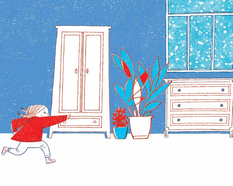 Il neige, une petite fille veut aller jouer dehors.
