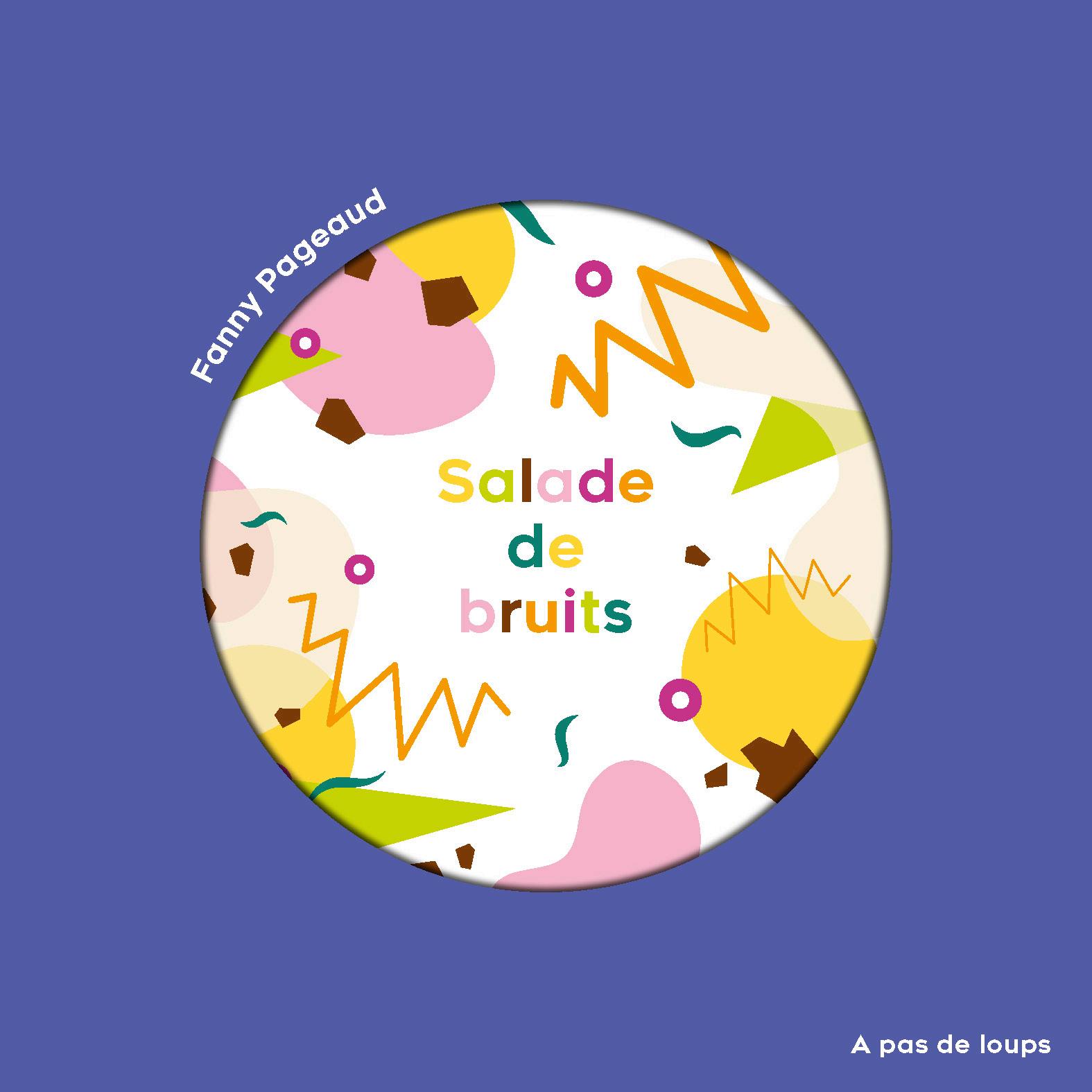 Fanny Pageaud a développé un vocabulaire graphique tentant de traduire des sons et des sensations gustatives par des formes et des couleurs. Visuellement, on retrouve les marqueurs graphiques d’une salade de fruits, mais il s’agit d’une partition-recette où les enfants apprendront facilement des sons-ingrédients.