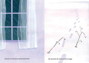 lausannoise, L’Imagier des sens aborde les quatre éléments à partir des cinq sens. S’inspirant de la nature qui l’entoure, l’illustratrice revient dans ce livre au dessin à la main pour aller au plus près des sensations, à l’essentiel.