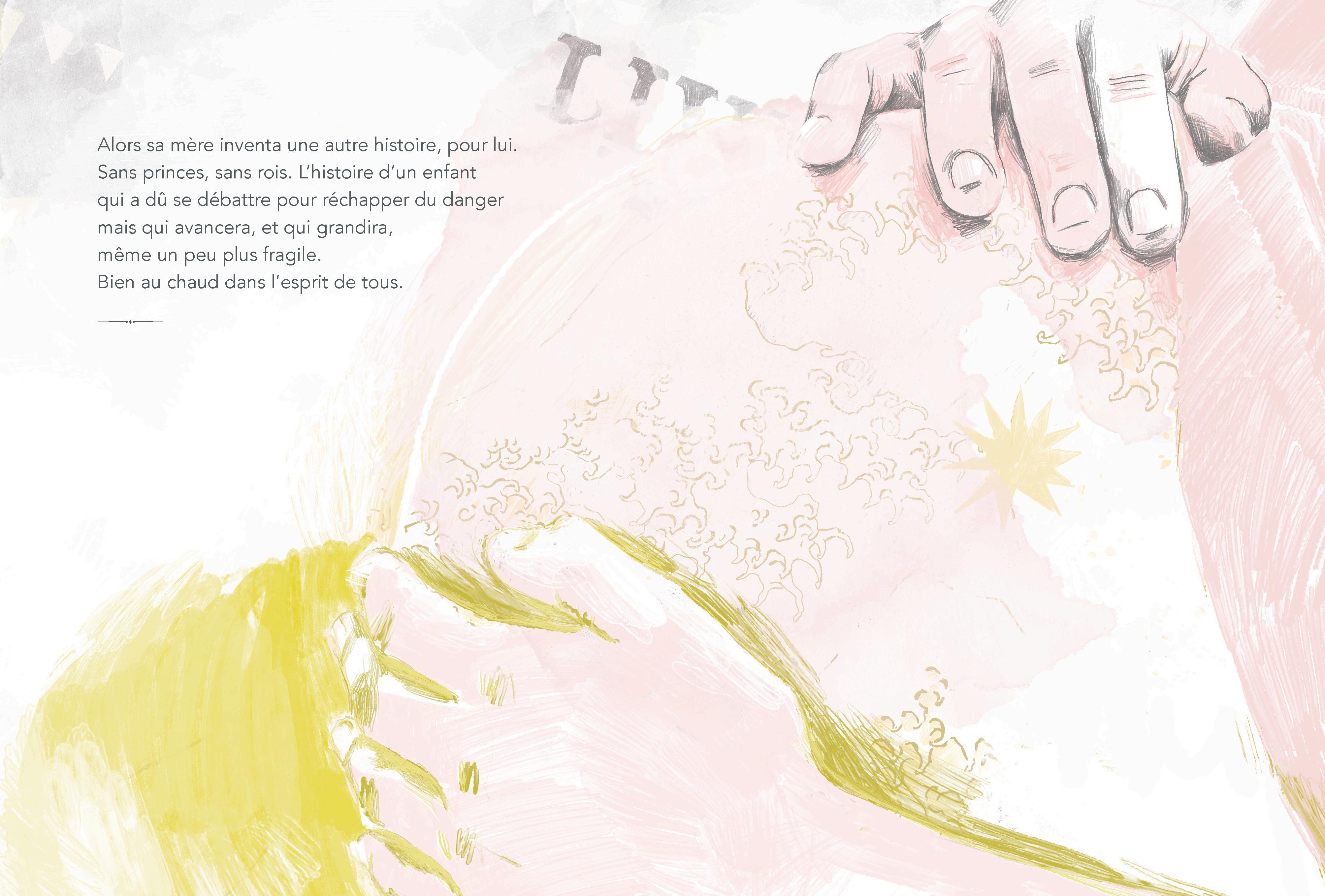 stylisées et illustrations plus enfantines pour marquer ce qu’on perçoit en tant qu’adulte et ce qu’on vit à hauteur d’enfant ;