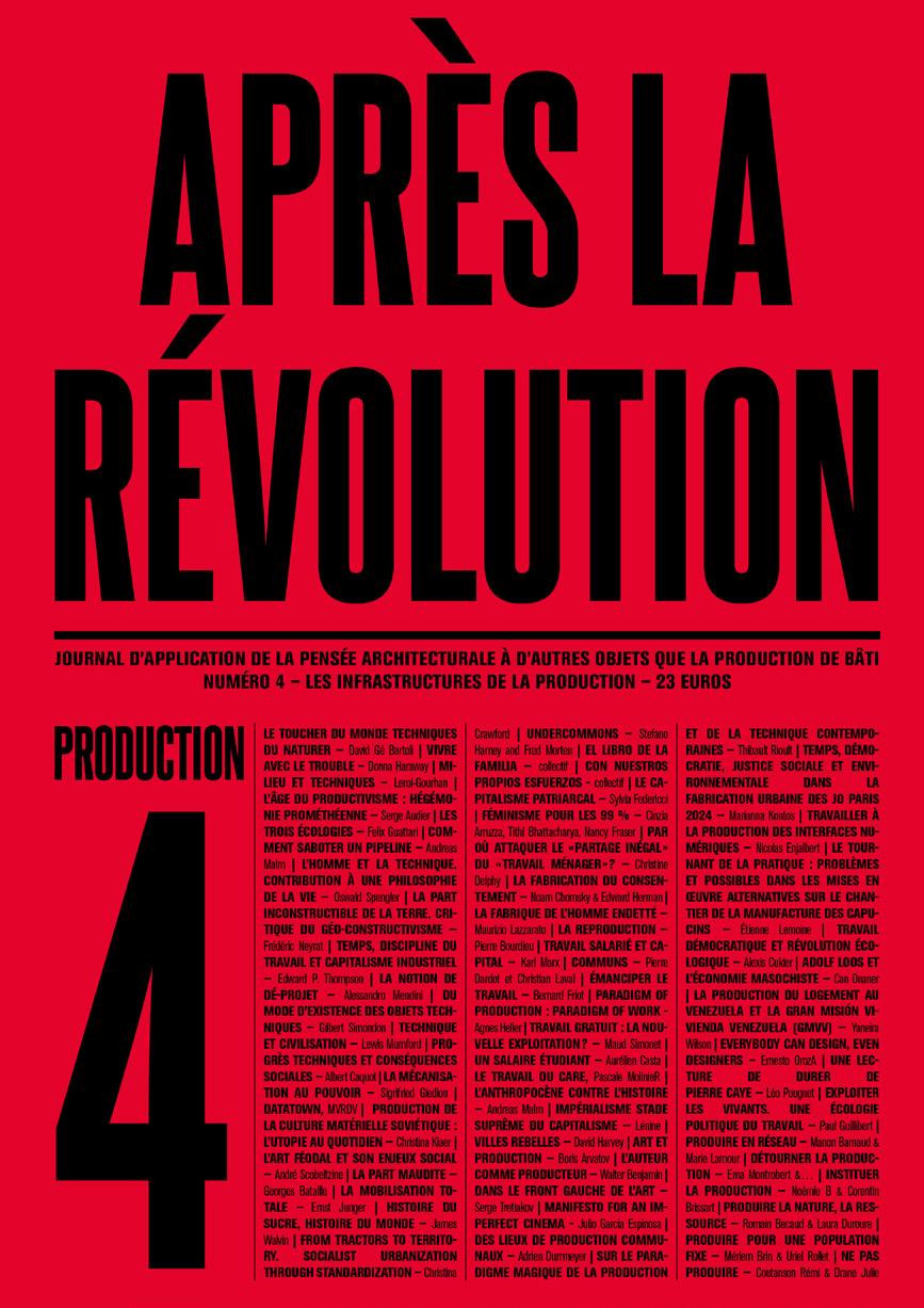 Après la révolution est un journal d’application de la pensée architecturale à d’autres objets que la production de bâti. Ce premier hors-série traite des luttes organisées et menées à l’occasion des Jeux Olympiques et Paralympiques de Paris 2024.