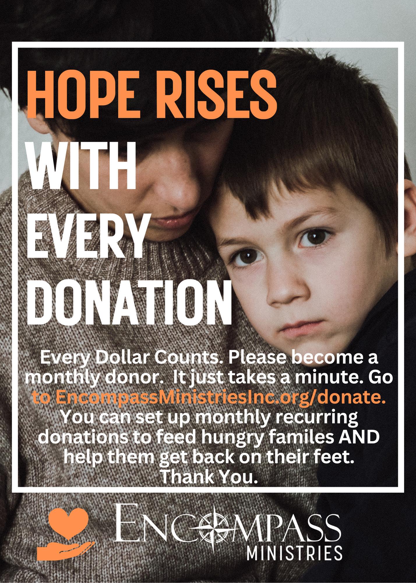 Please consider making a donation today and becoming a monthly donor. It's easy online: EncompassMinistriesInc.org/donate