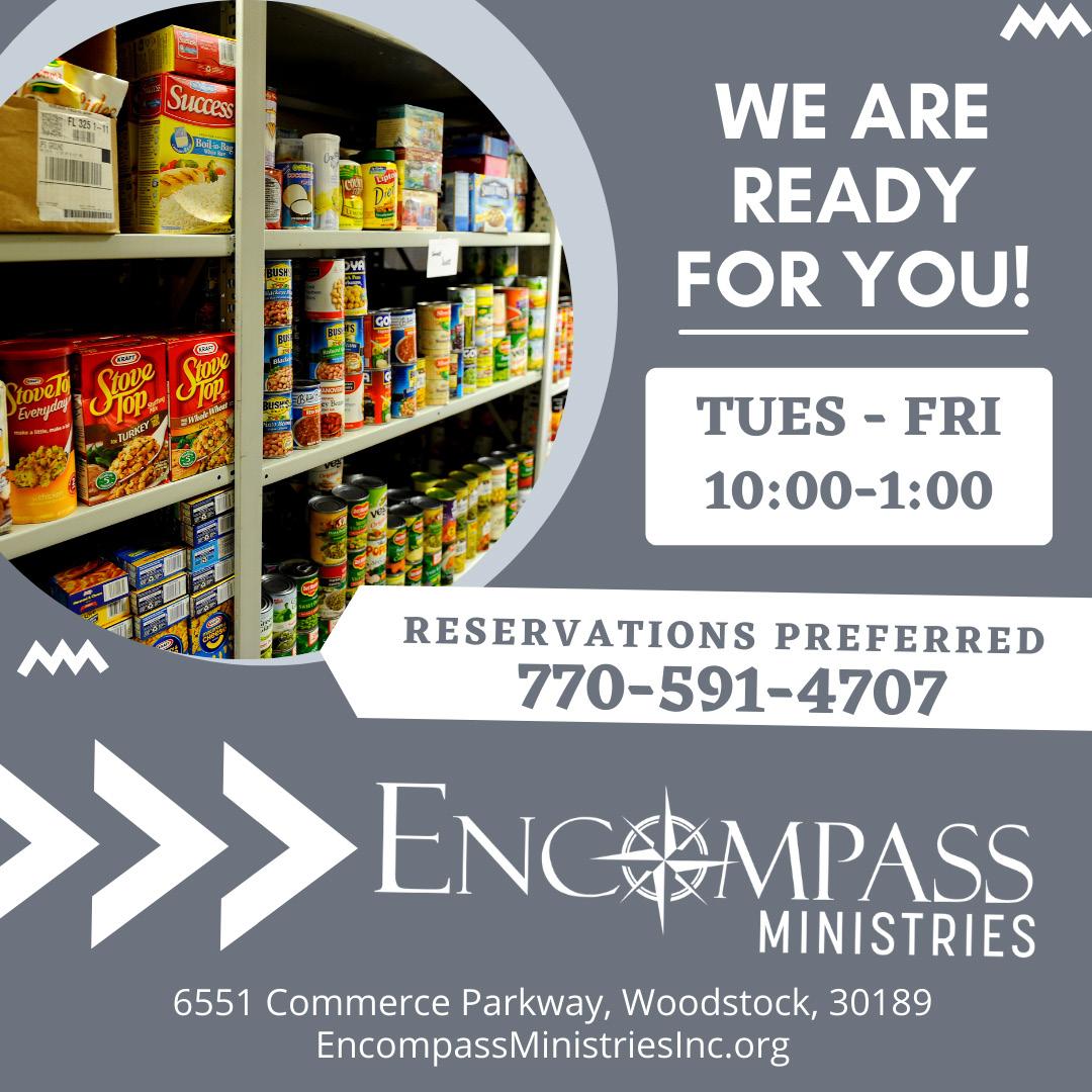 The mission of Encompass Ministries is to help individuals and families (re)establish stability and self-reliance by offering a variety of programs including immediate food assistance, employment strategies, and life skills through hands-on support and ongoing training in order to have a community where everyone has the tools to achieve stability and no one goes to bed hungry.