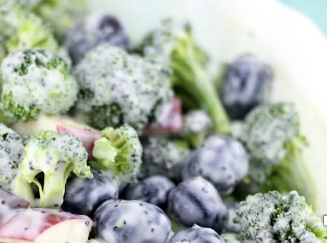In a medium bowl, whisk to mix yogurt, honey, lemon juice and poppy seeds. Set aside. In a serving bowl toss together the remaining ingredients. Pour dressing over the fresh ingredients and mix well. Refrigerate to chill before serving.