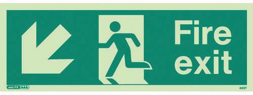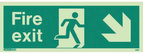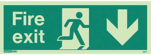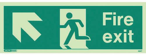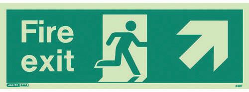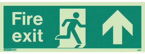 The fire exit sign with arrows should be fixed on or above any fire exit door where the exit direction will be. Our Jalite photoluminescent rigid plastic safety signs glow in the dark if the lights go out.