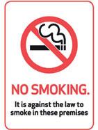 No smoking signs are still required on any premises with either staff or public access, and must be at least A5 in size.