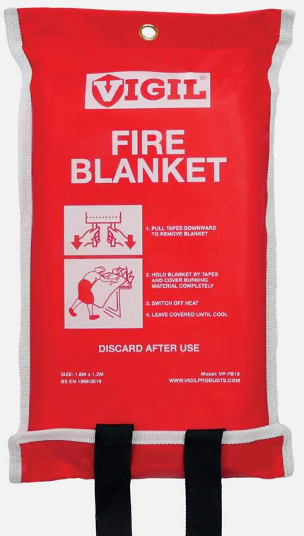 Our Vigil Fire blankets offer a quick, easy and effective way to tackle small fires that are commonplace in kitchens, workplaces and homes. Manufactured from a high-quality coated glass fibre material, they're performance and quality tested in accordance with BS EN 1869:2019 and supplied in a wipe-clean soft-pouch case with clear printed instructions.