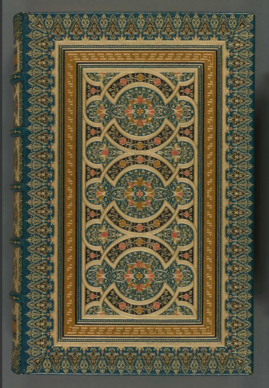O Our Layla design reproduces an 18th-century binding of the Khamsa, also known as the Panj Ganj (“Five Treasures”), the best-known work of the Persian poet Nizami Ganjavi which was written circa 1575.