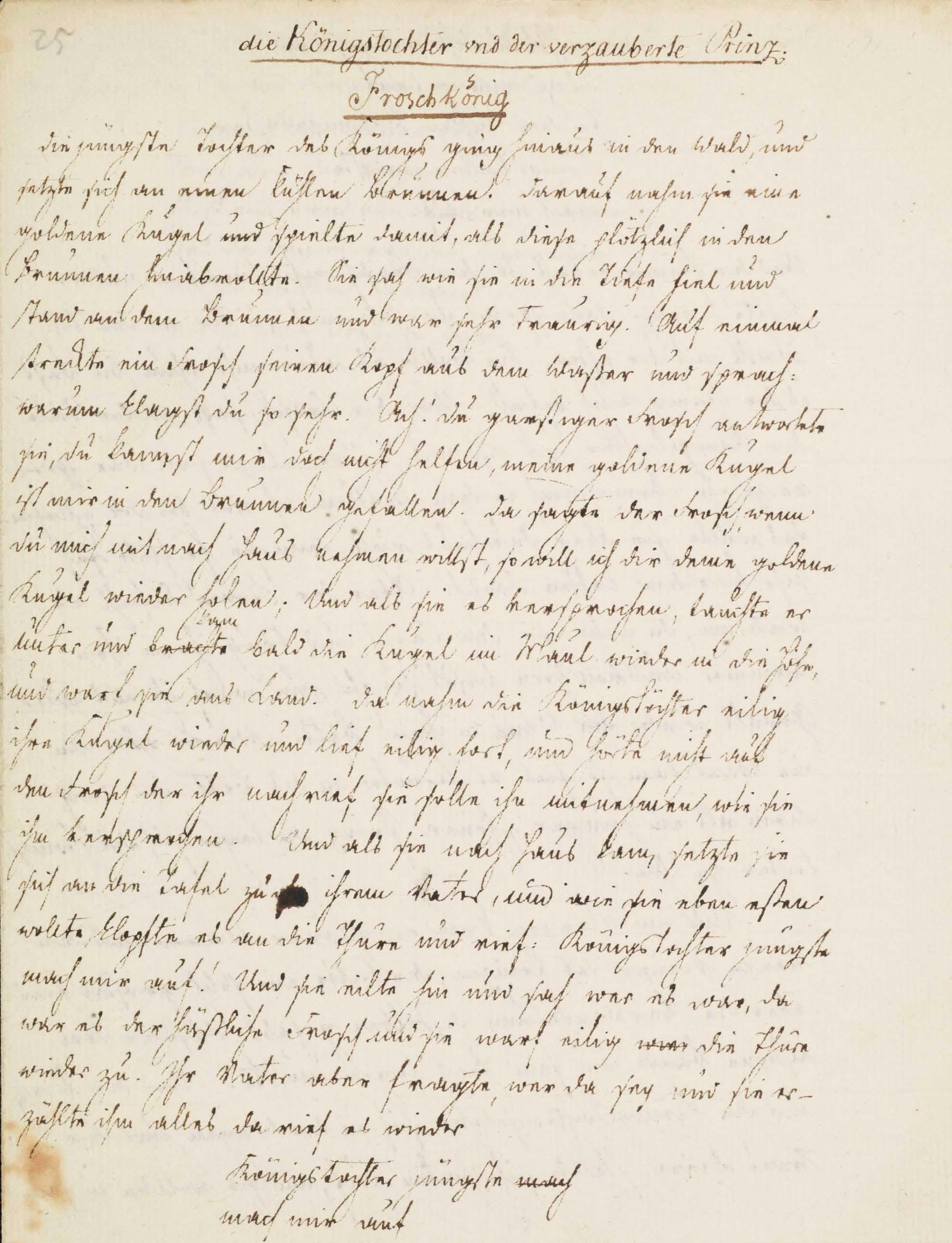 Original Artwork: Handwritten draft of “The Frog Prince” by the Brothers Grimm Era: 1812