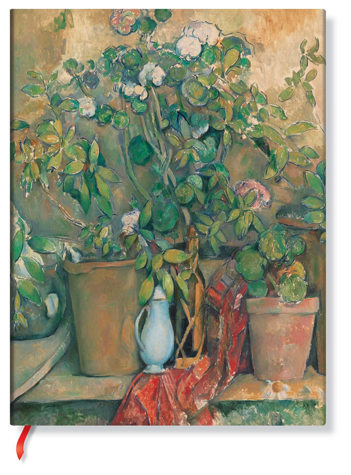 O Reproduced here is a work from his later years, Terracotta Pots and Flowers (1891–1892), which saw Cézanne enter a new world of still life painting.