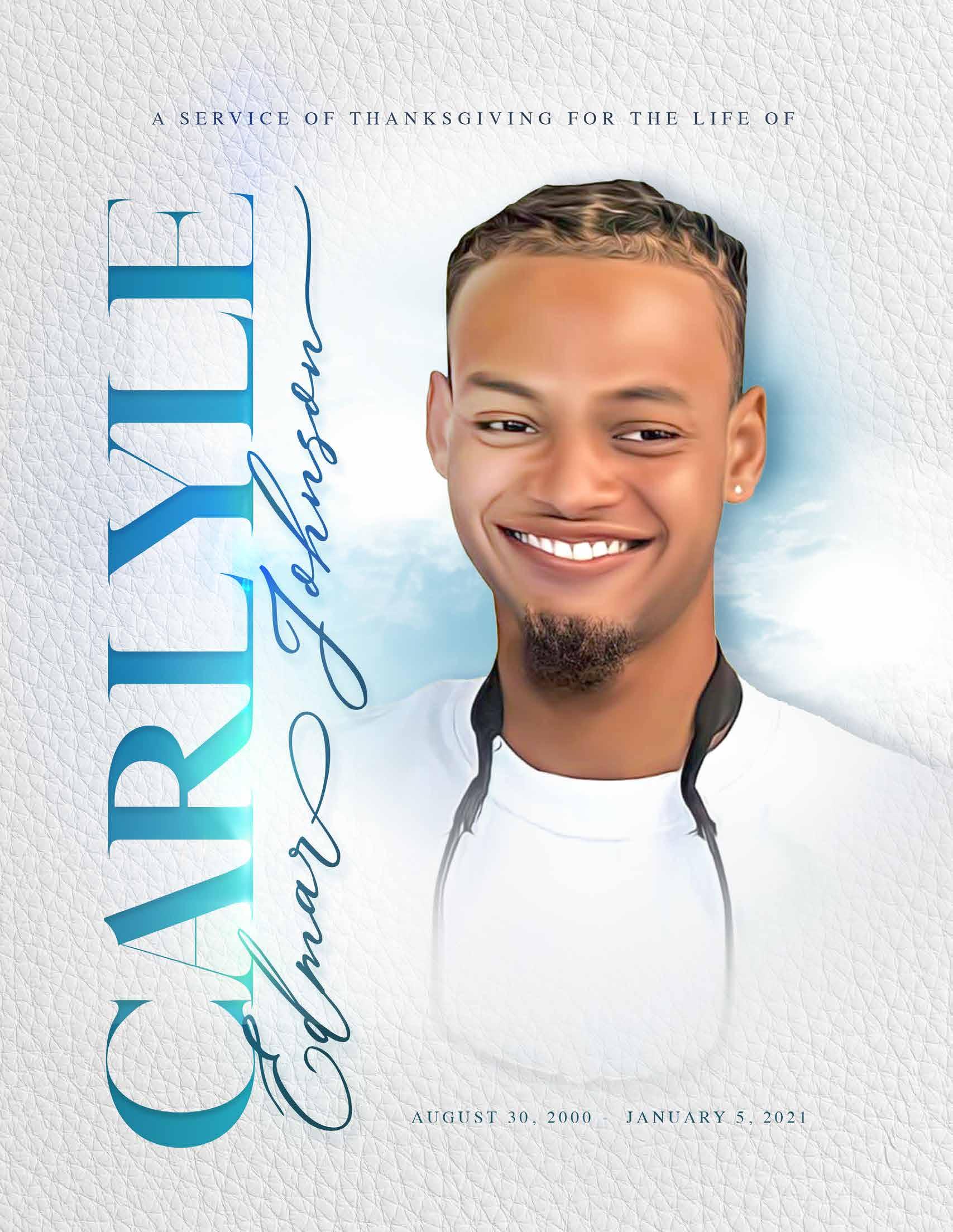 Carlyle is survived by: his Mother: Donna Miller; Father: Edmar Johnson; Sisters: Carlyia Miller and Sabra Knowles; Grandfathers: Livingston Prince Miller and Solomon Johnson; Girlfriend: Dana Kemp; Uncles: Nikio Orlander, Adam Huyler, Prince Miller, Franklyn Johnson, Philip Johnson, Stephen Johnson, Raymond Johnson, Derek Johnson and Samuel Smith; Aunts: Angela Johnson and Coralee Smith; Godmother: Princess Boston; Godfather: Raleigh Seymour; Cousins: Elroy Miller, Rain Strachan, Sky Strachan, Nyosha Orlander, Kimora Hyler, Franklyn Jr., Giovanni, Sonovia and Cecelia Johnson, Skakesha Murray, Corissa Bodie, Alexia Cooper, Alexandria Bodie, Shakeria, Freddie, Phillippa, Philicia and Philip Jr. Johnson, Shontay Rahming, Latayah and Raymond Jr. Johnson, Samuel Jr., Ashley and Ashton Smith, Vashawna Thompson and Derek Jr. Johnson.