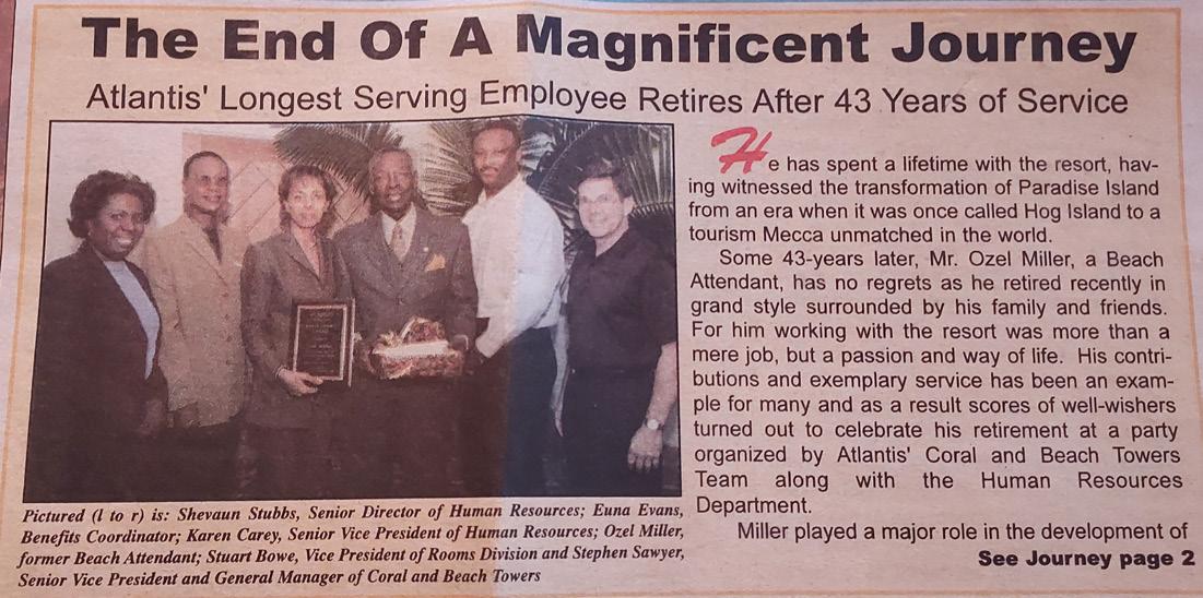 Ozel grew up on the island of Acklins with 7 younger siblings and from there, developed a passion for fishing and marine life. He received his formal education at the Hard Hill All Aged School. At a young tender age, he left for work in Mayaguana to help care for his family. He later moved to the United States to work on the contract. In 1960, he moved to Nassau and became employed at the Merv Griffin Resort (now Atlantis Resort). He witnessed the transformation of Hog Island (now Paradise Island) into a major tourism mecca. He served there for 43 years; first as a switchboard operator but being a water sports enthusiast, he soon transferred to working as a yachtsman, responsible for transporting the resort’s (then) owner from the western part of Paradise Island to other parts of the island and to Nassau as there was no bridge connecting the two islands at that time. He later worked as a Recreational Life Guard before his retirement in 2003. At that time, Ozel served as the longest serving employee of the resort, receiving honorable mention for his long-term dedication and hard work through out the years.