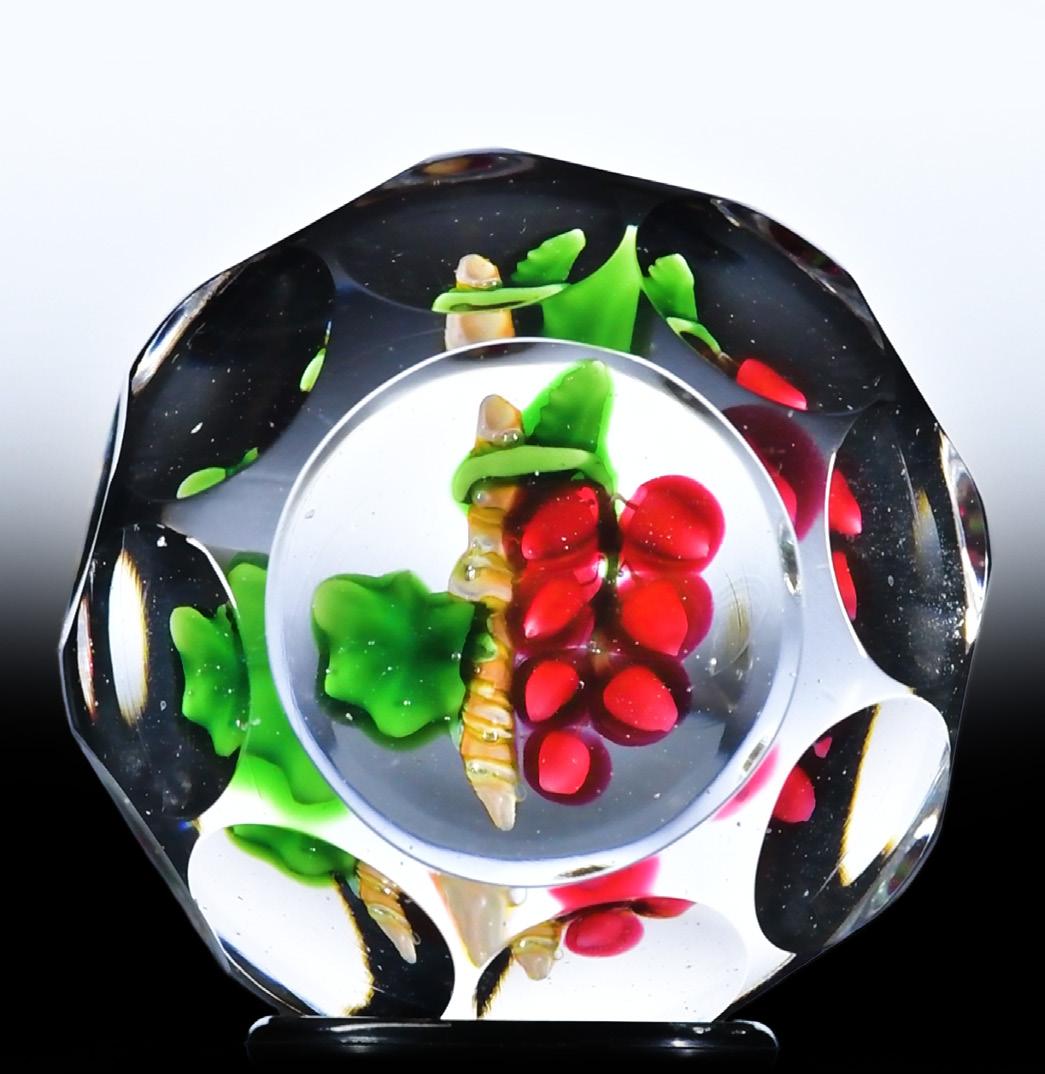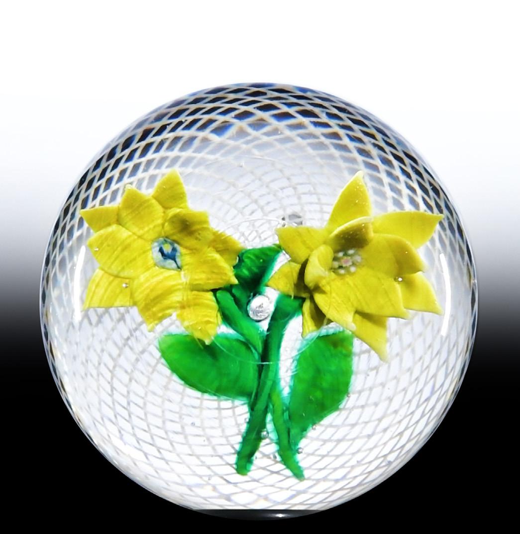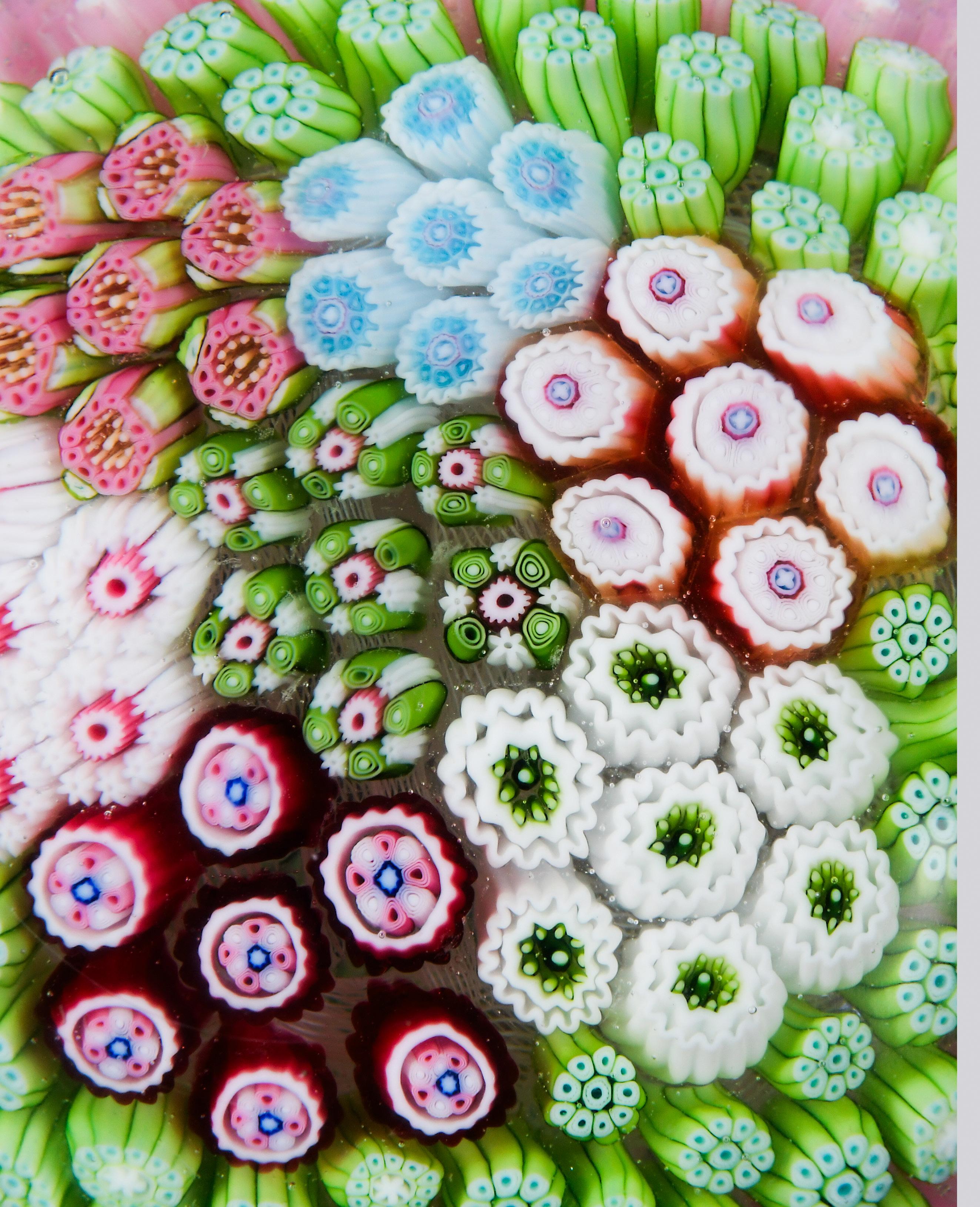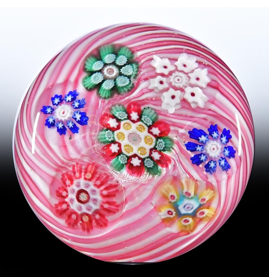 “Whether woven to celebrate love, victory or merely beauty, the millefiori garlands found in patterned spacing schemes are among the most graceful and delicate ornaments found in paperweights.” —Paperweights for Collectors . Previously sold in the L.H. Selman Ltd. Fall 2011 49th Auction as lot 15.