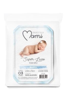0225 - TOALHA DE FRALDA SUPER LUXO MAMI BRANCA - 03 unidades