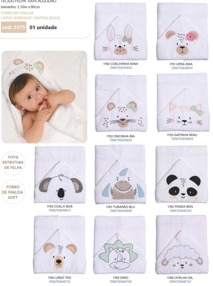 1946 - TOALHA DE BANHO PAPI SOFT C/ CAPUZ BORDADO - 01 unidade