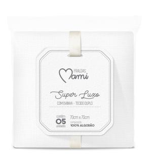0757 - TOALHA DE FRALDA SUPER LUXO MAMI COM BAINHA BRANCA - 03 unidades
