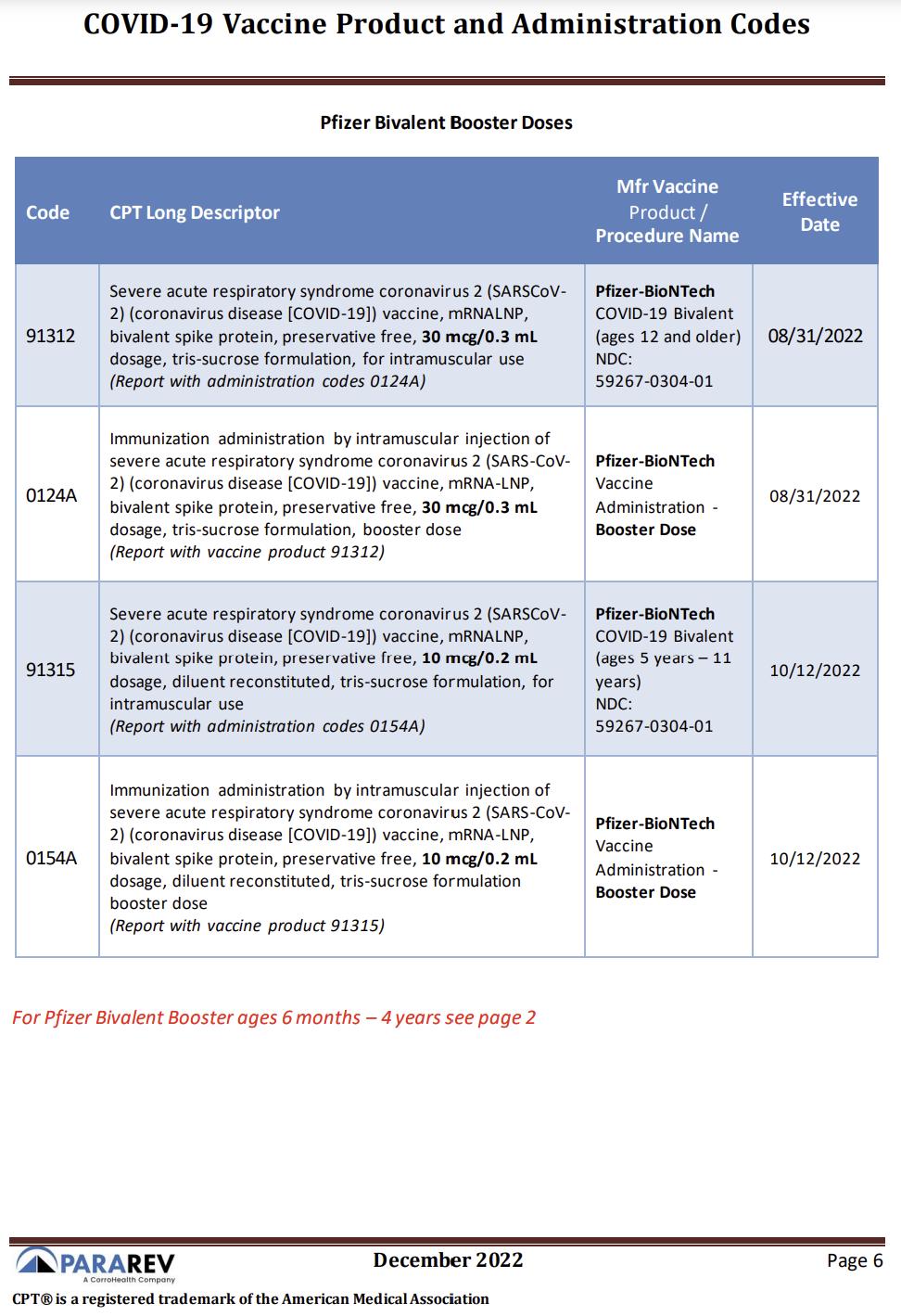 11 PARA Weekly eJournal: January 18, 2023 COVID-19 VACCINEPRODUCTAND ADMINISTRATION CODES