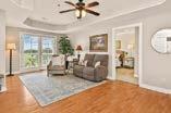 • NIce Living room area w/large windows, laminate flooring & doorways to hallway or kitchen/dining area