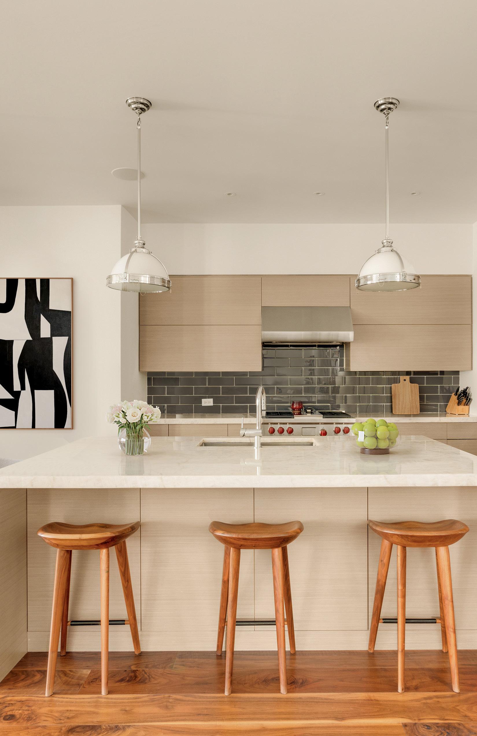 The centerpiece of the home is the custom-designed open kitchen, seamlessly integrated into the living space. Outfitted with Quartzite countertops, and a double-width island offering abundant storage, the kitchen is as functional as it is striking. Top-of-the-line appliances include Sub-Zero, Wolf and Miele, a fully vented hood, wine fridge, and an oversized refrigerator, ensuring a seamless cooking and entertaining experience.