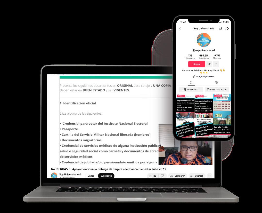 SOY UNIVERSITARIO: CREAR CONTENIDO CON UTILIDAD SOCIAL. Con 28 años de edad Jacob ha creado un canal en el que informa y explica las reglas de operación, mecanismos y demás para cientos de internautas que desean aprender cómo funcionan la extensa cantidad de becas, apoyos, convocatorias y programas sociales, que funcionan en el país.