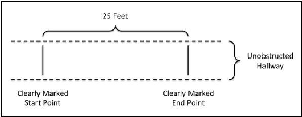 • The patient is directed to one end of a clearly marked 25-foot course and is instructed to walk 25 feet as quickly as possible