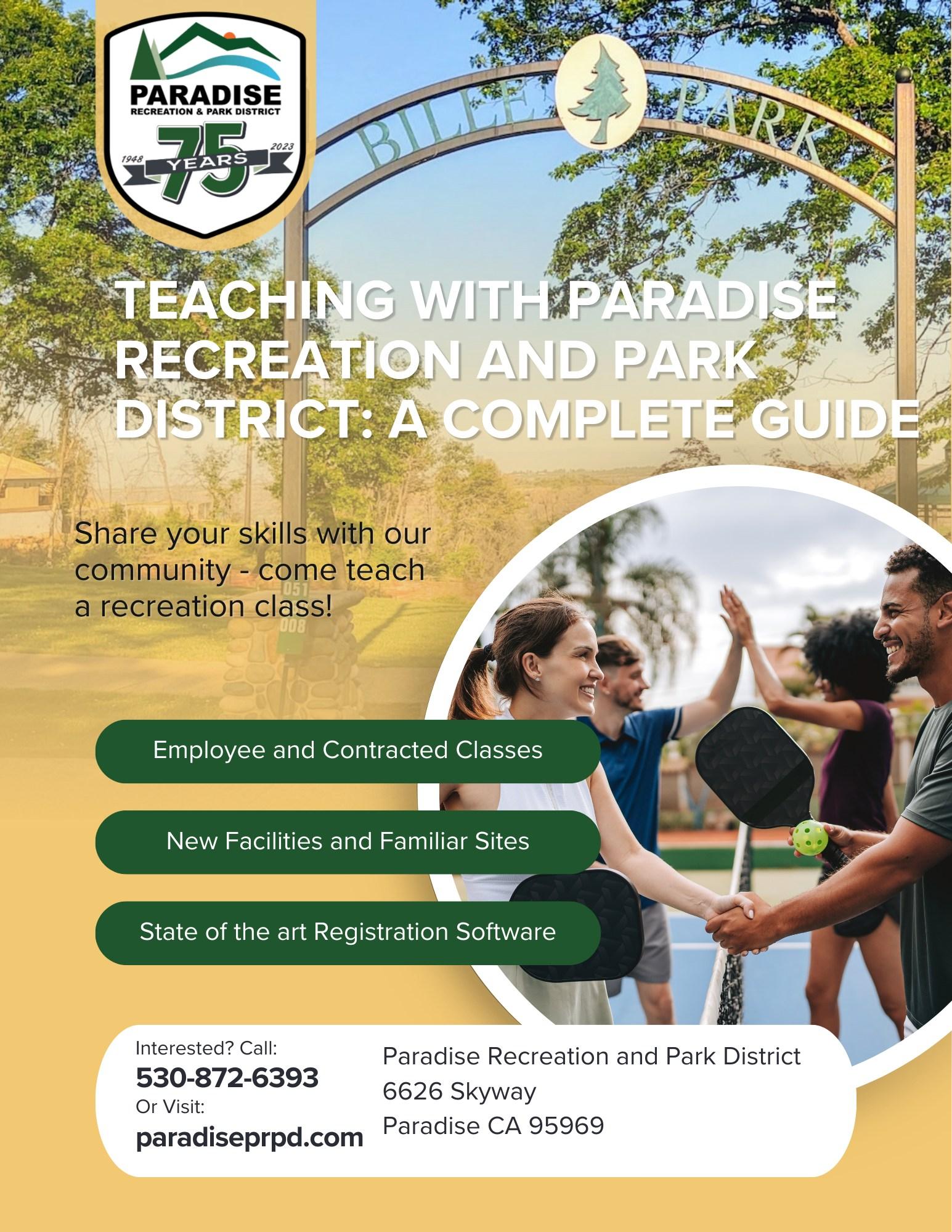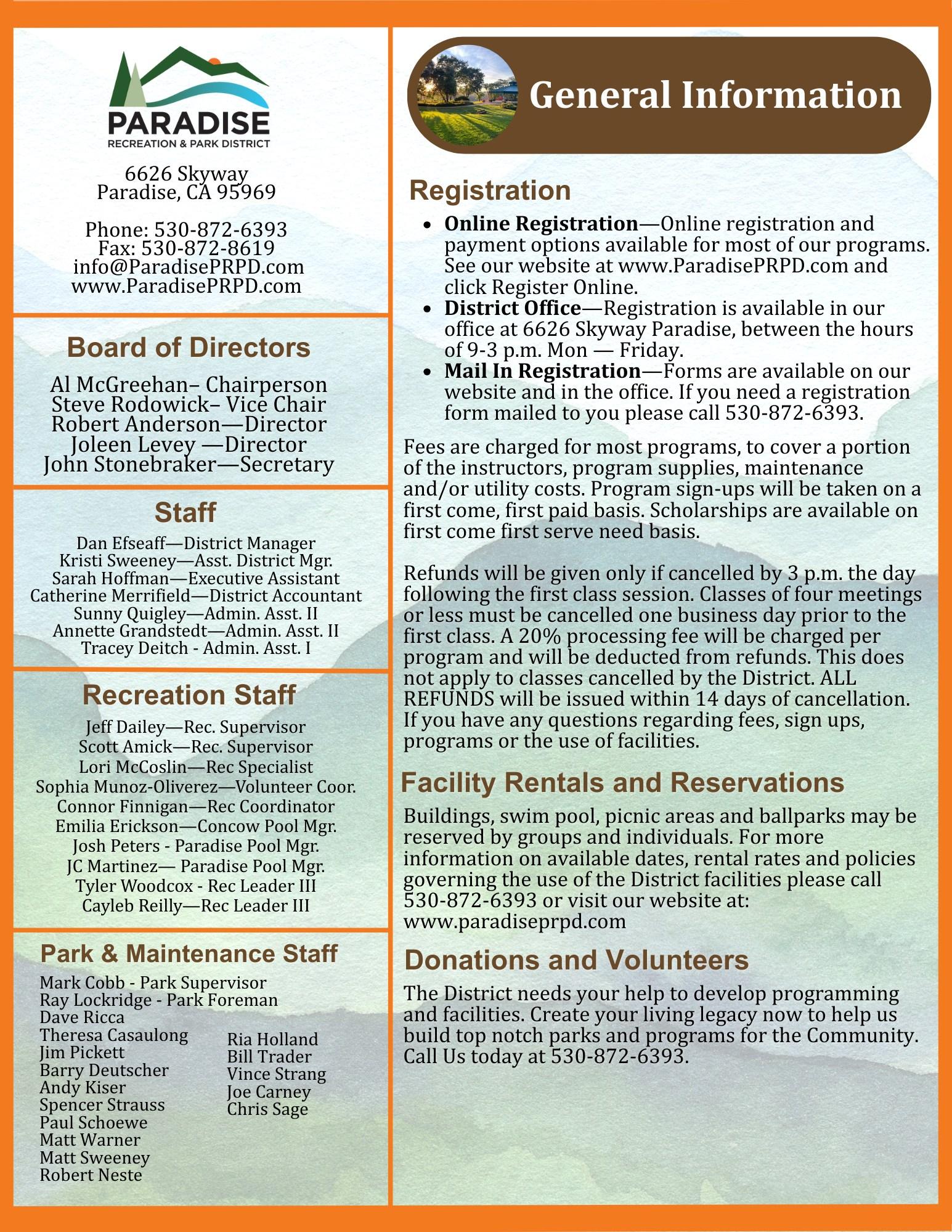 The Paradise Recreation & Park District reserves the right to photograph facilities, activities and program participants for potential future use. All photos will remain the property of Paradise Recreation & Park District and may be used for publicity or promotional purposes. If you have photos you would like