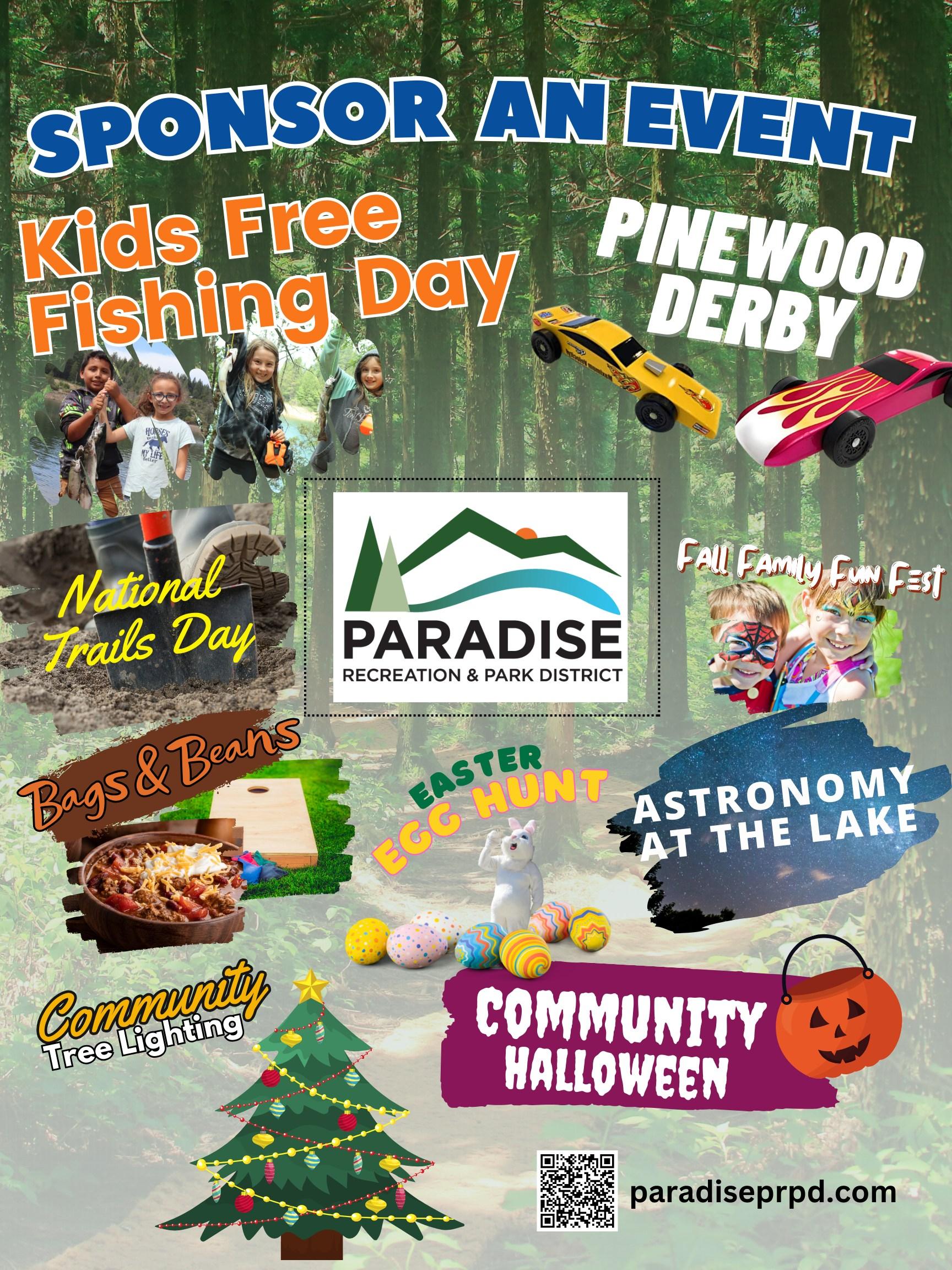 Join PRPD for this long running fishing tradition at Paradise Lake. The lake will be stocked with hungry trout, and the event will also include raffles, prizes, food, and drinks. Only youth ages 3-15 years are permitted to fish with parental supervision. Proceeds raised through donations and concessions will be used to purchase fish for the following year’s event. The lake will be closed the week before Kid’s Fishing Day.