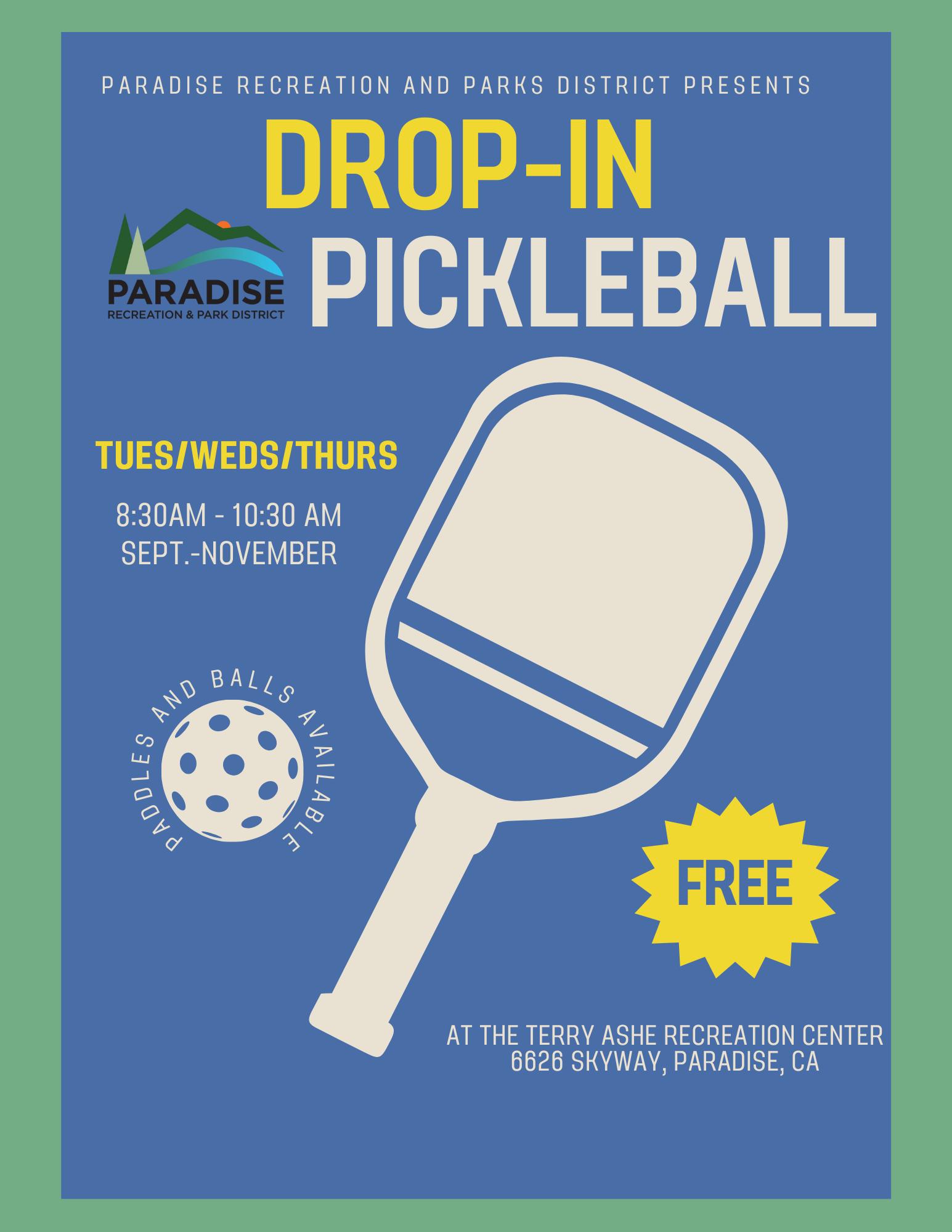 Pickleball is the fastest growing sport in the United States and PRPD has three outdoor courts available for all ability levels. Pickleball is a fun and lively game that is easy to learn. It is played on a badminton sized court with special paddles and a plastic ball. PRPD will be offering dropin times two days a week. Some paddles and balls are available to use. Rain will cancel the program.