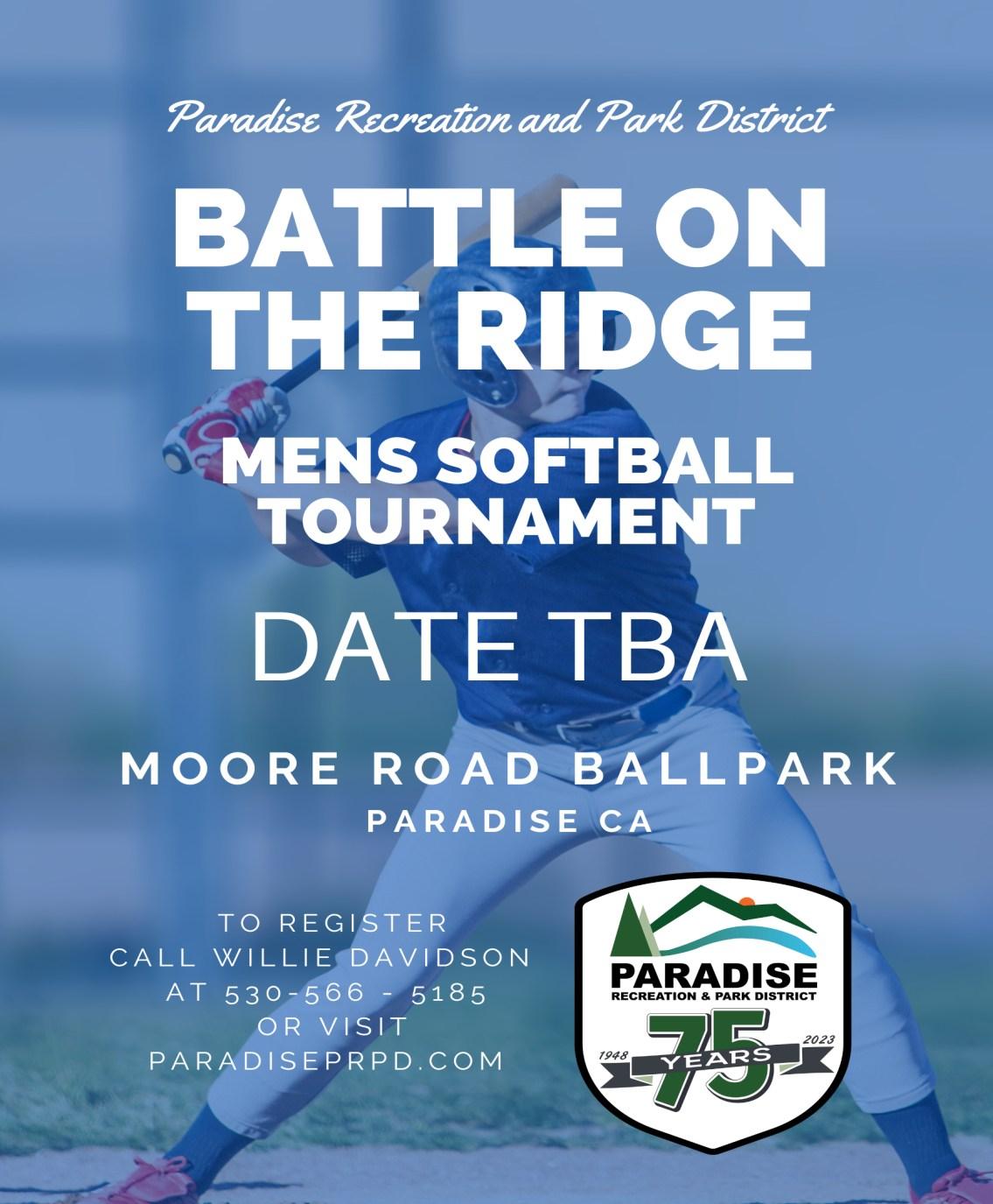 Time to bring tournament softball back to the Ridge. This ongoing Paradise tradition had been going 16 years prior to the Camp Fire and it’s time to bring it back to the Ridge. This will be the third softball tournament scheduled. This will be the Battle of the Co-Ed’s weekend. Structure of this tournament to be determined by instructor by tournament date.