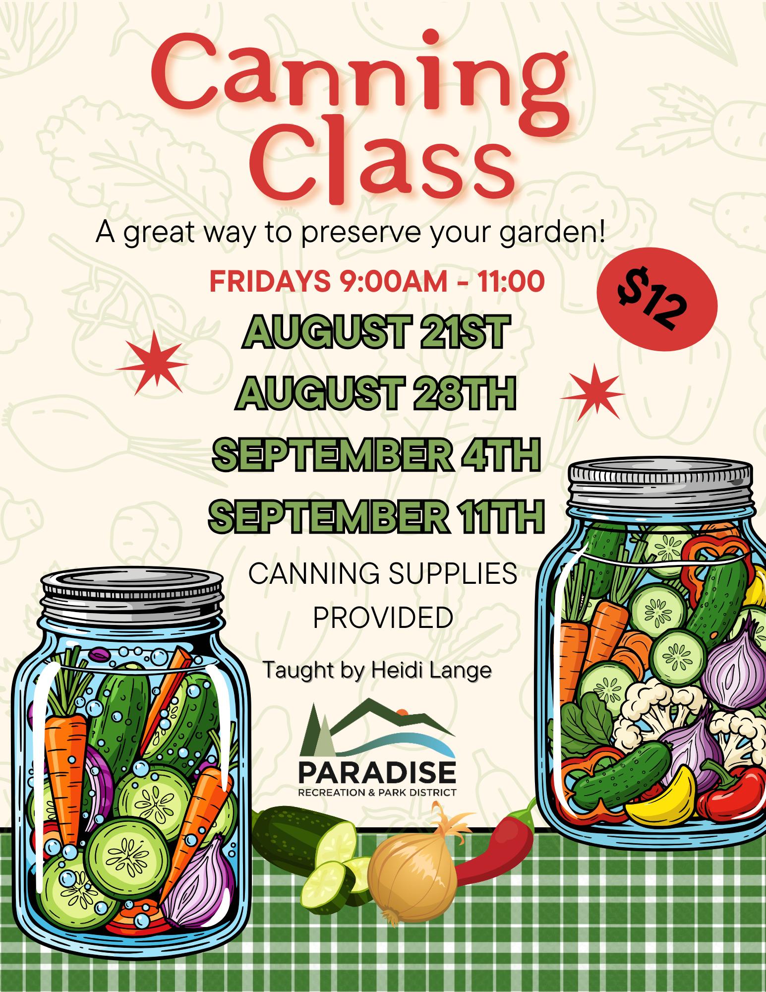 Have you ever wanted to learn how to can/jar your own produce? It’s a great way to preserve your garden harvest to enjoy year-round and increase your family’s food security. This class will teach you the steps and procedures to properly can produce. No equipment or produce is needed for this class. This is a one-day instructional class.