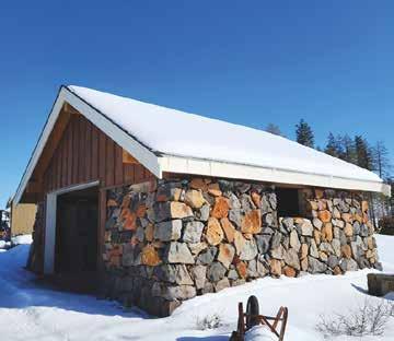 The historic Magalia Community Church, serving the Ridge for 129 years, pictured on a snowy day. In the foreground, a replica of the church featured in Gold Nugget Days parades.