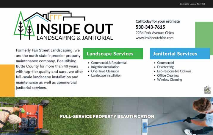 15 Commerce Ct. Suite 150 • Chico, CA 95928 • Lic #671927 www.BillsonConstruction.com (530) 343-2293 Your Complete Building, Development and Management Construction Co. Give us a call regarding your next project! Commercial Construction from tenant improvement to new buildings including Retail, Restaurants, Medical & Dental Professional Offices. Residential Construction from Custom Homes to Multi Family projects and Remodeling. From Design to Move in Ready. Building throughout Butte County since 1992