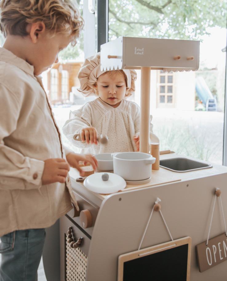 Laat je kindje de dagelijkse handelingen imiteren, zodat ze al spelend leren communiceren, vertellen wat ze doen, en hun fantasie ontdekken.