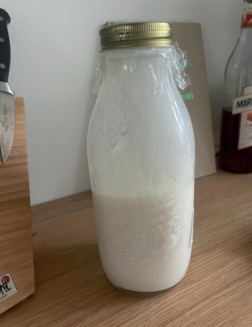 Tip: Ønsker du at sænke fermenteringsprocessen, fordi du for eksempel skal på ferie, så kan du sætte kefirblandingen i køleskabet.