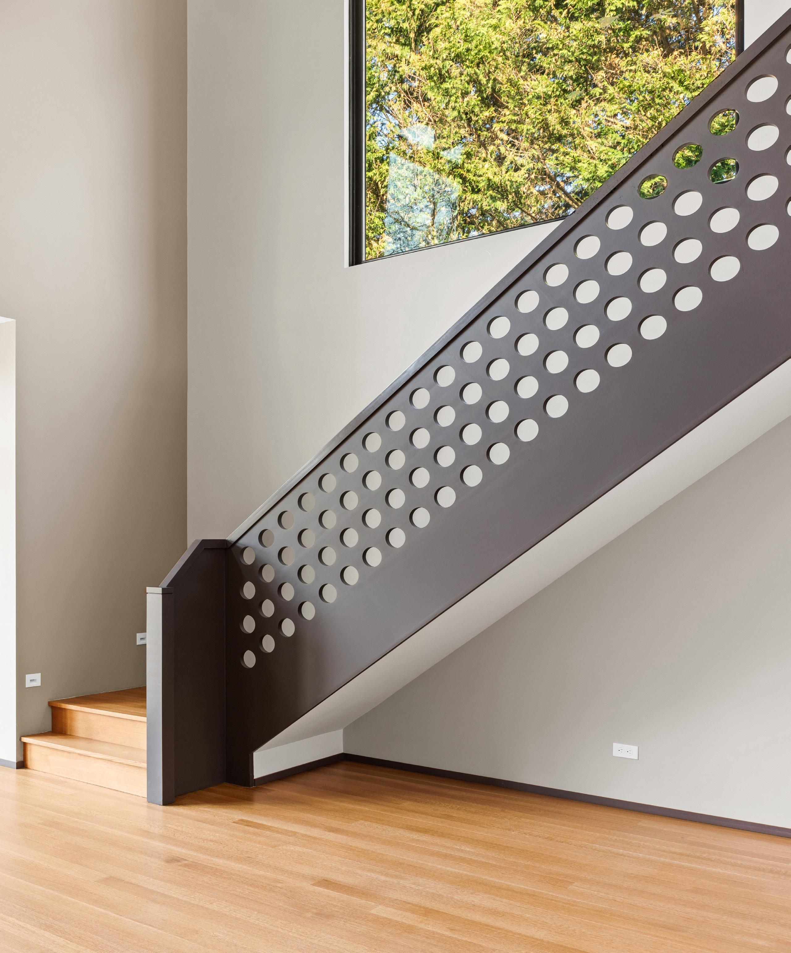 A double-height entry gallery sets the tone, where natural light moves through walls of glass and highlights clean architectural lines.