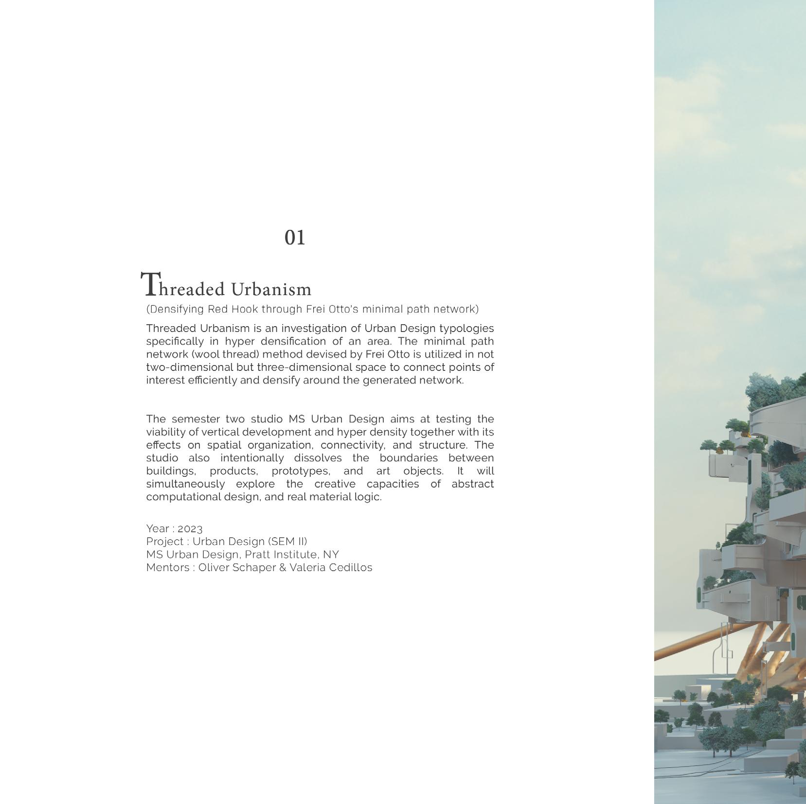 Threaded Urbanism is an investigation of Urban Design typologies specifically in hyper densification of an area. The minimal path network (wool thread) method devised by Frei Otto is utilized in not two-dimensional but three-dimensional space to connect points of interest efficiently and densify around the generated network.