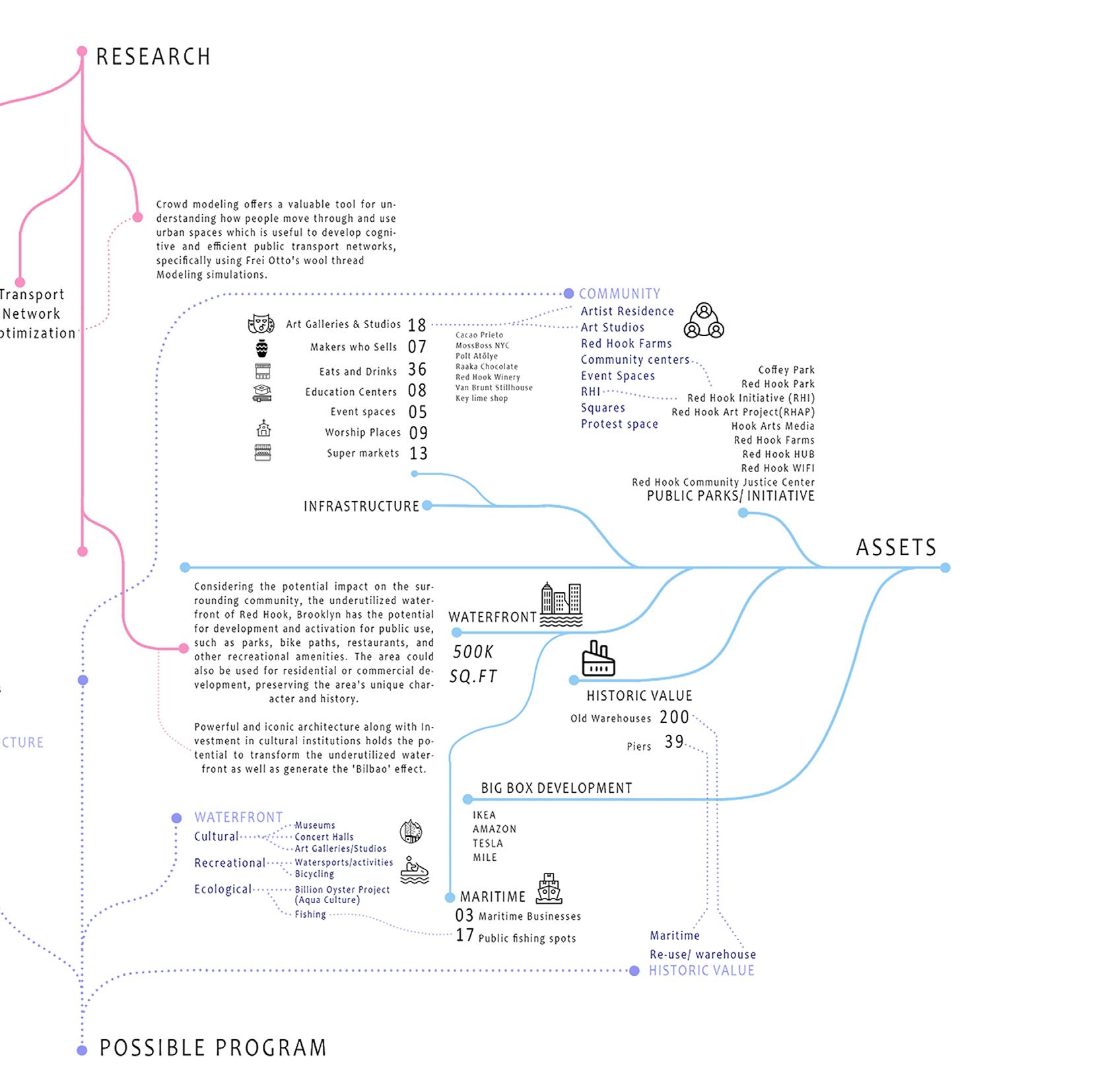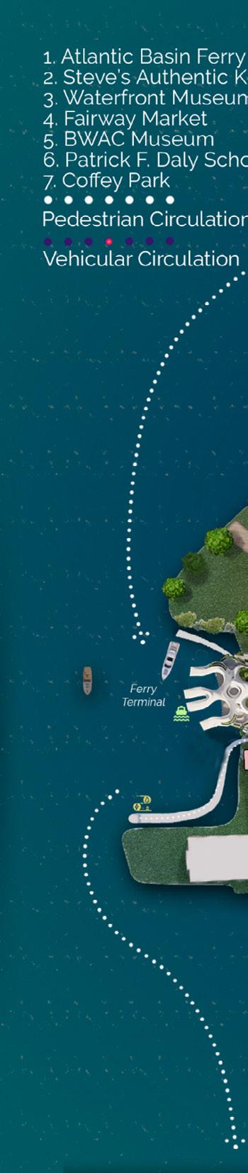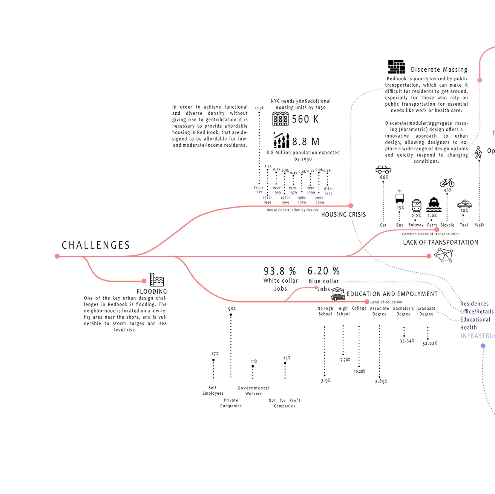 The initial semester of the MS Urban Design centered on flood resilience and con-nectivity solutions for the Red Hook neighborhood, in Brooklyn. Also, a new ferry terminal is proposed to bridge Red Hook’s geographical isolation, fostering better connections with Manhattan and Governors Island.