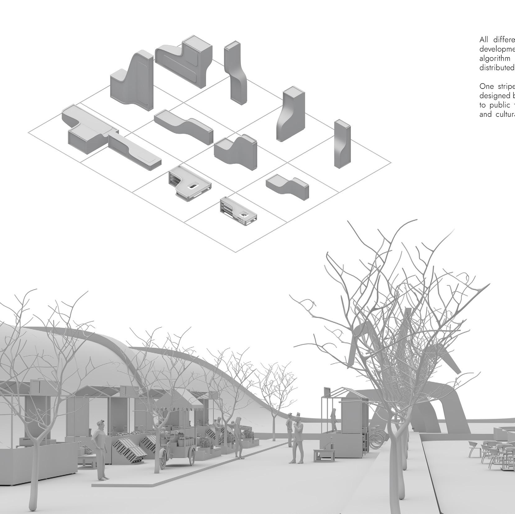 modules are interlocked to achieve a mixed-use developwith the help of the Wave Function Collapse algorithm in and manual placement, they are distributed on the generated earlier Core.