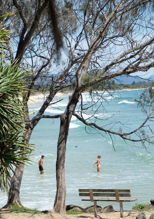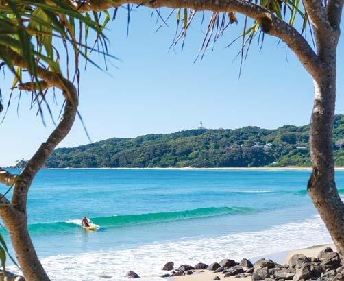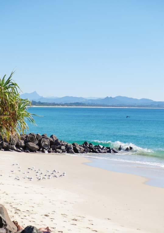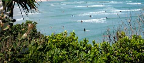 diverse eco landscape. See the walking tracks on the Byron Bay map page 64. I recommend an early morning beach walk, then tackle the steps up to the Pass Lookout to check out the surfers, see some local dolphins or spot the whales.
