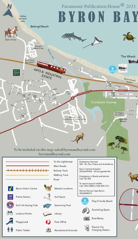 Copyright: The Byron and Beyond What’s On - The Visitor Guide is copyright. The contents of this magazine, including editorials, photographs and artwork, are strictly not to be reproduced without the express permission of the publisher, Paramount Publication House. The Advertisers warrant that any advertising material published in The Byron and Beyond What’s On - The Visitor Guide is in no way an infringement to the copyright or other such acts, is not unlawful, defamatory or libelous and does not infringe the Trade Practices Act or other regulations, laws or statutes. Advertisers agree to indemnify Paramount Publication House and Peter Wotton of any claims, damages or costs, including legal expenses or otherwise, resulting from any breaches of the above warranties.