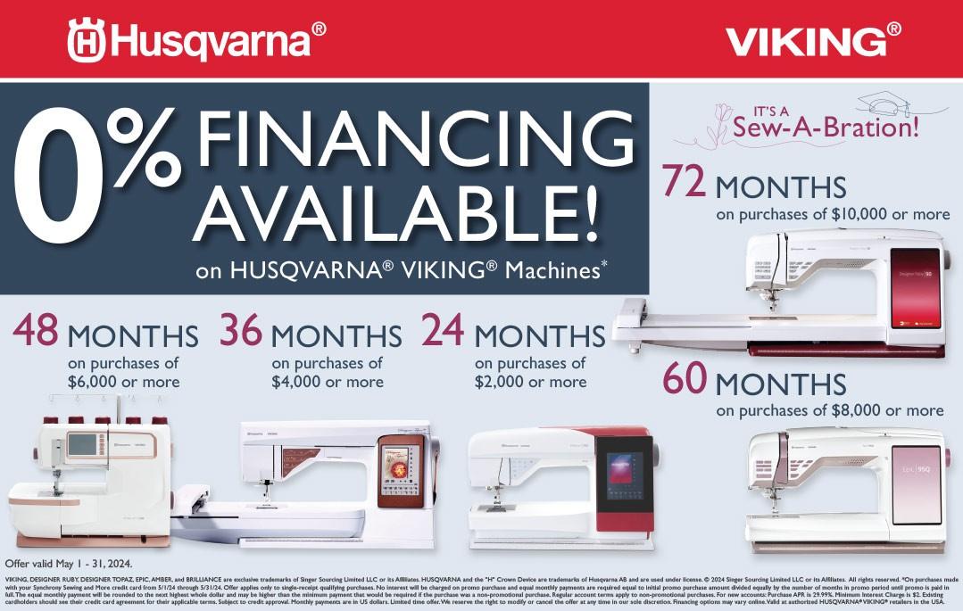 Up to 60 Months 0% Financing is available for purchases on PFAFF® icon™ machines: For creative icon™ 2 , save up to $5,000 with trade-in. For performance icon™, save up to $3,500 with trade in.