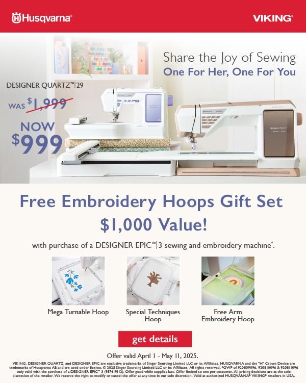 When purchased, this program goes into your profile and is active for a year. During that time, each dollar you spend on qualifying items goes on your profile and adds up. Every time you have hit the $100 mark, the system will give you a $5 off coupon. This coupon is valid for one year and can be used on your next transaction or saved for that really special purchase. Maybe one of the best benefits of this program is where you have purchased a machine from us. Not only do you receive your discount, but that transaction also goes towards your rewards program. We call it, justified double dipping.