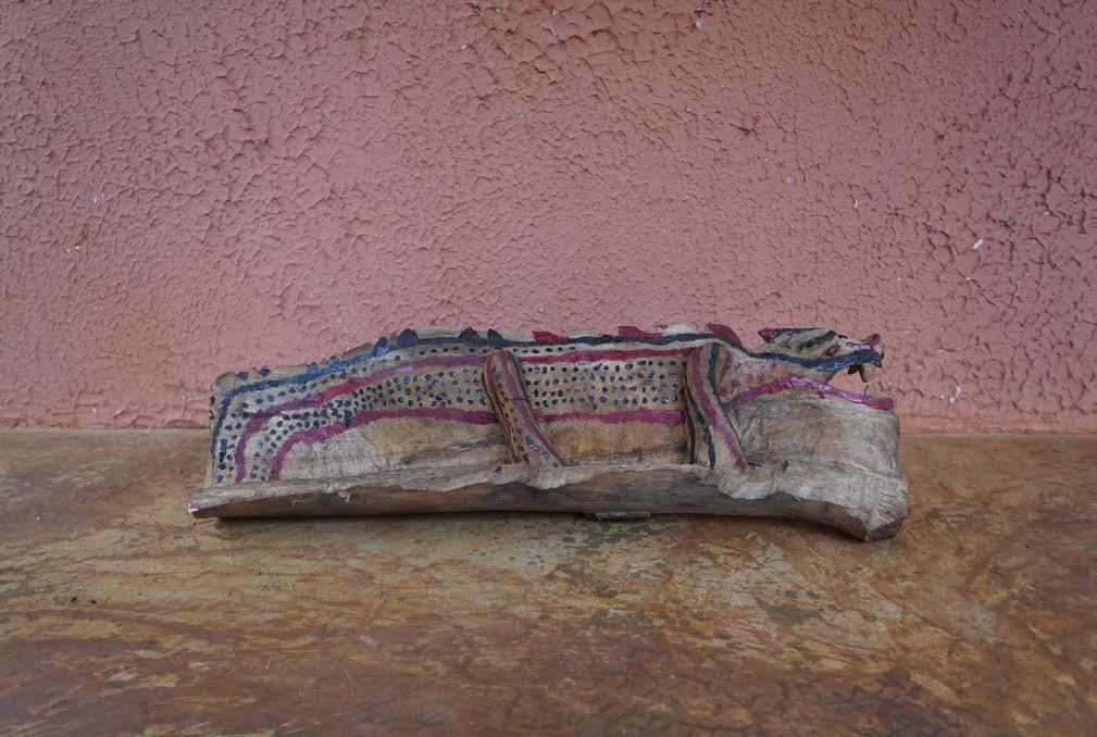 Since 2016, Art Labor has been fostering dialogue around traditional wood carving and music practices through various ongoing collaborations with a community of Jrai artists including Puih Gloh, Puih Han, Rahlan Loh, Rcham Jeh, Romah Aleo, Siu Huel, Siu Kin and Siu Lon. The wood-carved sculptures, which breathe new life into discarded tree trunks, serve as a metaphor for the cyclical forces of regeneration and extinction that define the fraught relationship between human and nature. The newly commissioned sculptures range from animalistic to mythical figures, reflecting the Jrai artists’ contemporary perspective on traditional rituals, as well as expressing their daily lives and personal experiences. Elsewhere in the exhibition, there are a few musical instruments on display, ready for visitors to interact and play with. R Cham Tih is a renowned multiinstrumentalist who is continuously experimenting with the invention of new instruments to preserve Jrai traditional music in the region. The soundscape created by the musical instruments activates the exhibition space by echoing and resonating with other artworks.