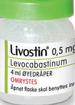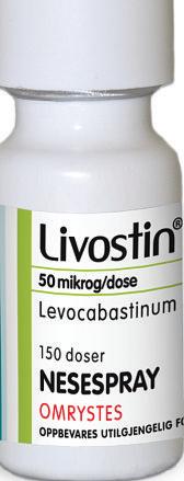 LIVOSTIN® nesespray og øyedråper er selektive H1-antagonister LIVOSTIN® gir hurtig og effektiv lindring ved blant annet pollenallergiplager i nese og øyne. Kan brukes som eneste behandling, eller i kombinasjon med tabletter