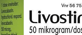 Livostin® (levokabastinhydroklorid) er et reseptfritt legemiddel til bruk ved pollenallergi. Det er ingen nedre aldersgrense for bruk av Livostin®, men ved bruk av øyedråper til barn under seks år bør lege kontaktes. Hvis ikke Livostin® hjelper mot allergisymptomene i løpet av et par dager, eller du har plager bare på ett øye, bør du søke legehjelp. Konserveringsmiddelet i Livostin® nesespray kan føre til hevelse i neseslimhinnen, spesielt ved langtidsbruk. Ved graviditet eller nyresykdom bør lege rådføres før bruk av Livostin® nesespray Les paknings-vedlegget før bruk. MT-innehaver: McNeil Sweden AB. Markedsføres i Norge av: Johnson & Johnson Consumer Nordic, division of Janssen-Cilag AS.
