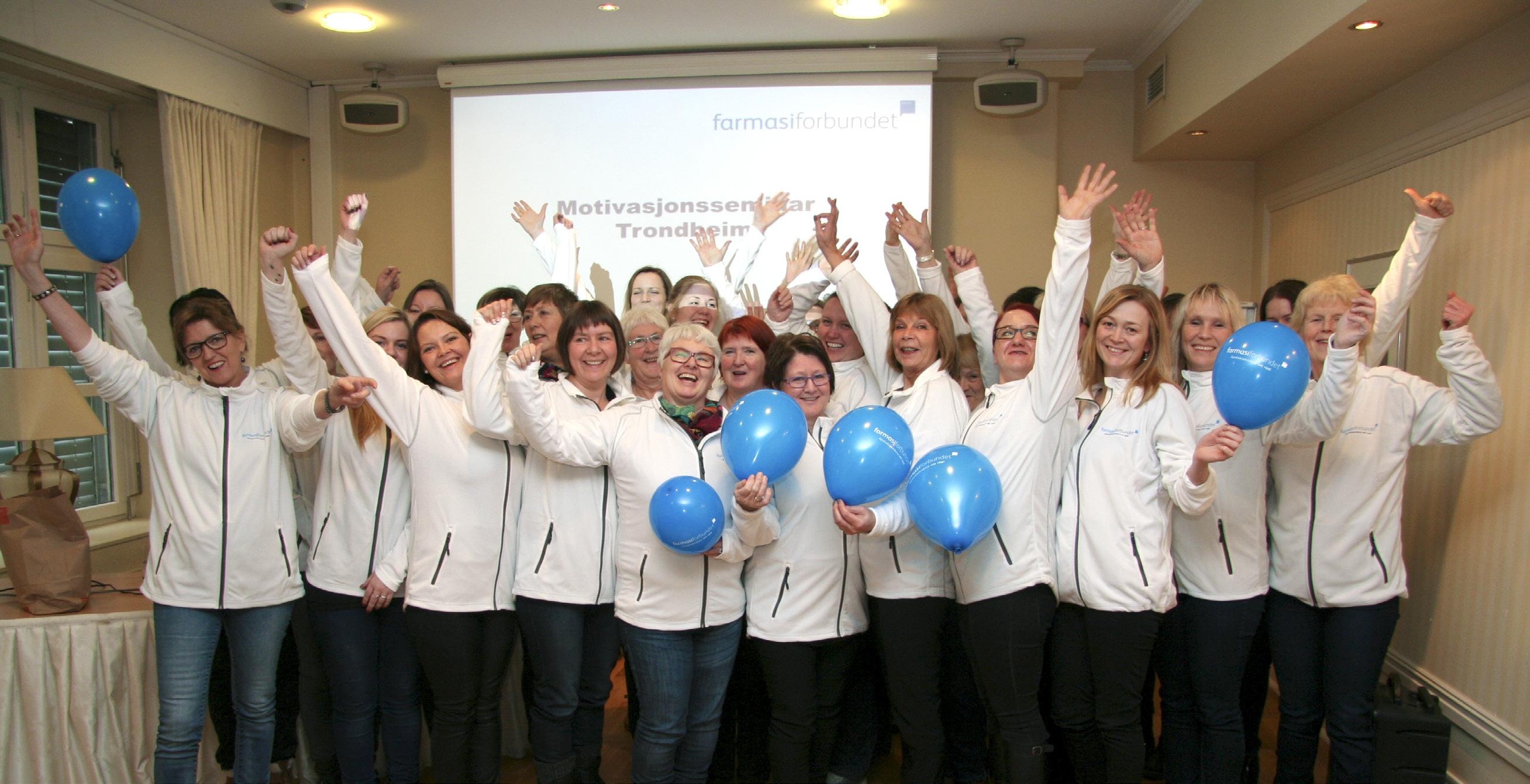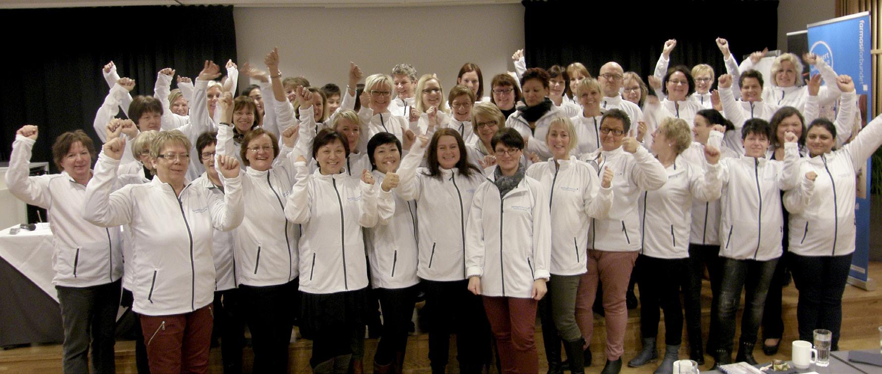 – For første gang markeres Farmasiforbundet på denne måten over hele landet, og det er kjempestas, sier forbundsleder Irene Hope. Hun deltok selv på samlingene i Tromsø og Bergen, mens nestleder Bodil Røkke tok seg av samlingene i Kristiansand, Oslo og Trondheim. Til sammen deltok over 200 mennesker på samlingene. Tanken med motivasjonssamlingene er å motivere tillitsvalgte og andre til å gjøre en innsats på sine apotek, for å synliggjøre yrket sitt og forbundet sitt – både overfor kollegaer og kunder.