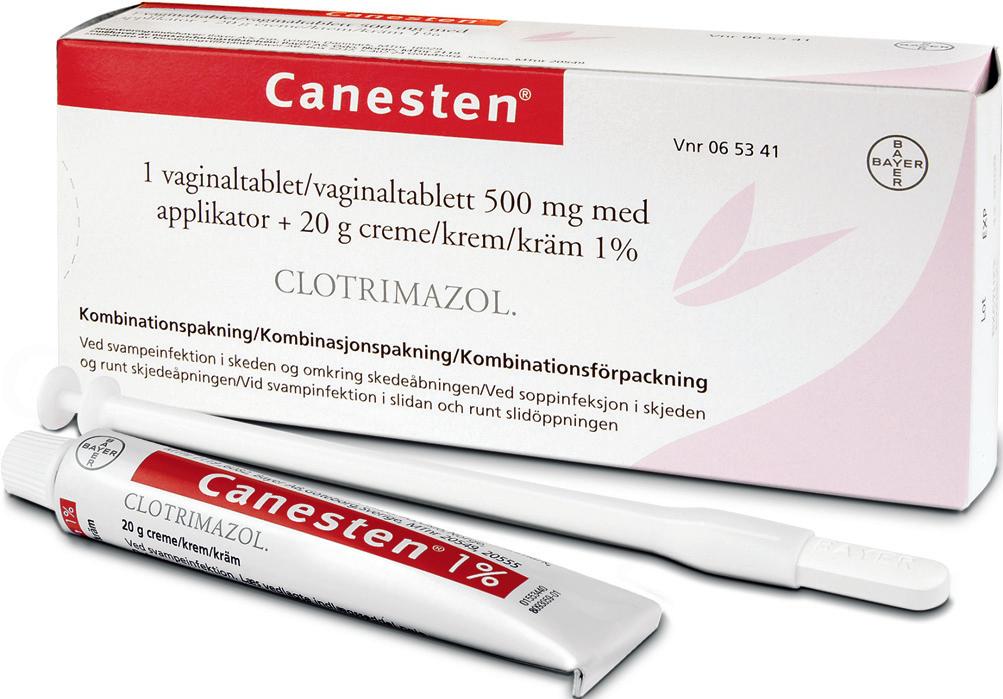 Canesten® 1-dags kombinasjonspakning inneholder både krem, vaginaltablett (vagetorie) og applikator. Det er som regel ikke nok kun å behandle med krem utvendig. Soppen som finnes inne i skjeden må også behandles, ellers kommer soppinfeksjonen lett tilbake. Med bare én enkelt behandling fjerner vaginaltabletten irriterende symptomer som kløe og svie i tillegg til at den kurerer infeksjonen. Canesten vaginaltablett inneholder også melkesyre. Melkesyre er med på å gjenopprette den naturlige pH-balansen i skjeden. Canesten kjøpes reseptfritt i apotek. Les mer på www.canesten.no